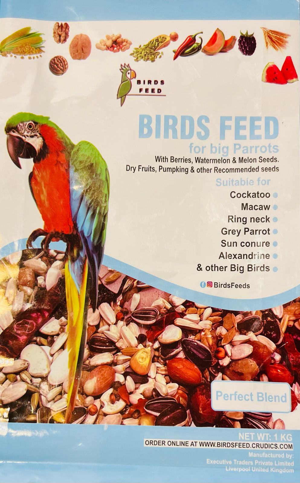 A Perfect Blend with berries, watermelon and melon seeds, dry fruits, pumpkins and other recommended seeds.